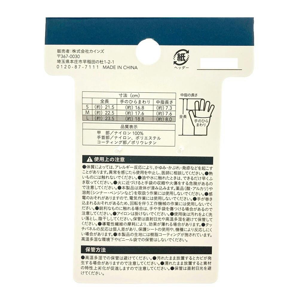甲部:ナイロン100%/手首部:ナイロン、ポリエステル/コーティング部:ポリウレタン