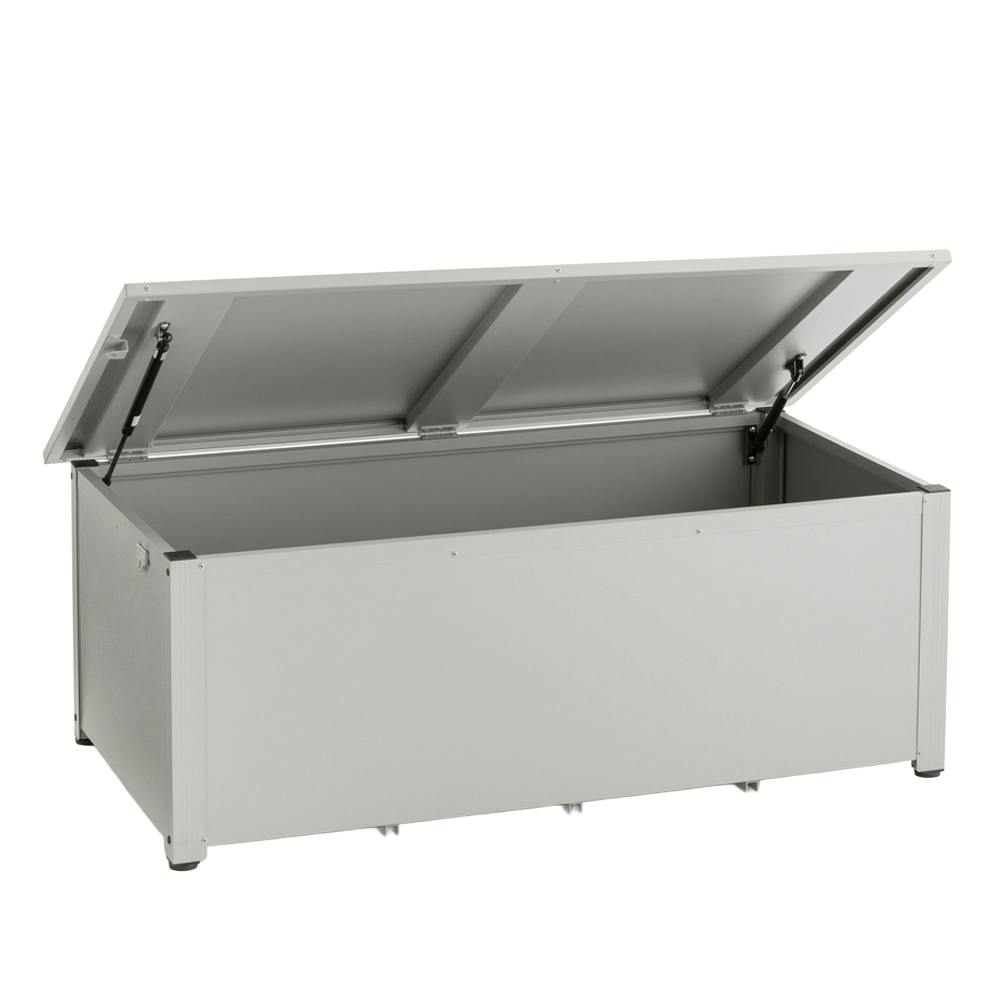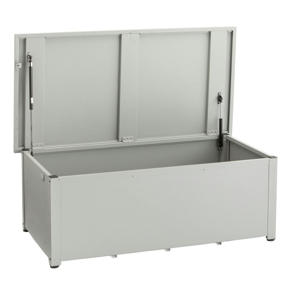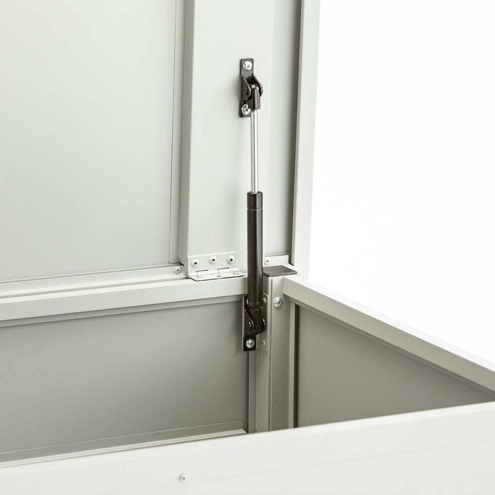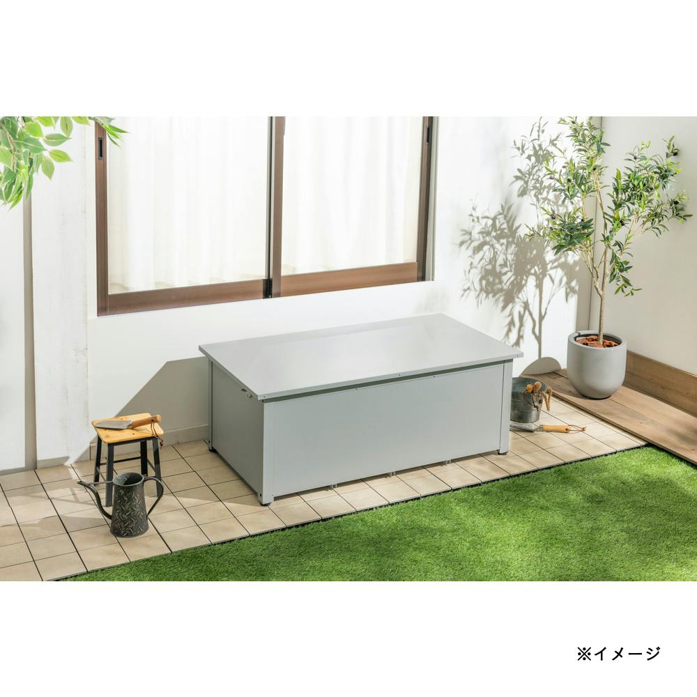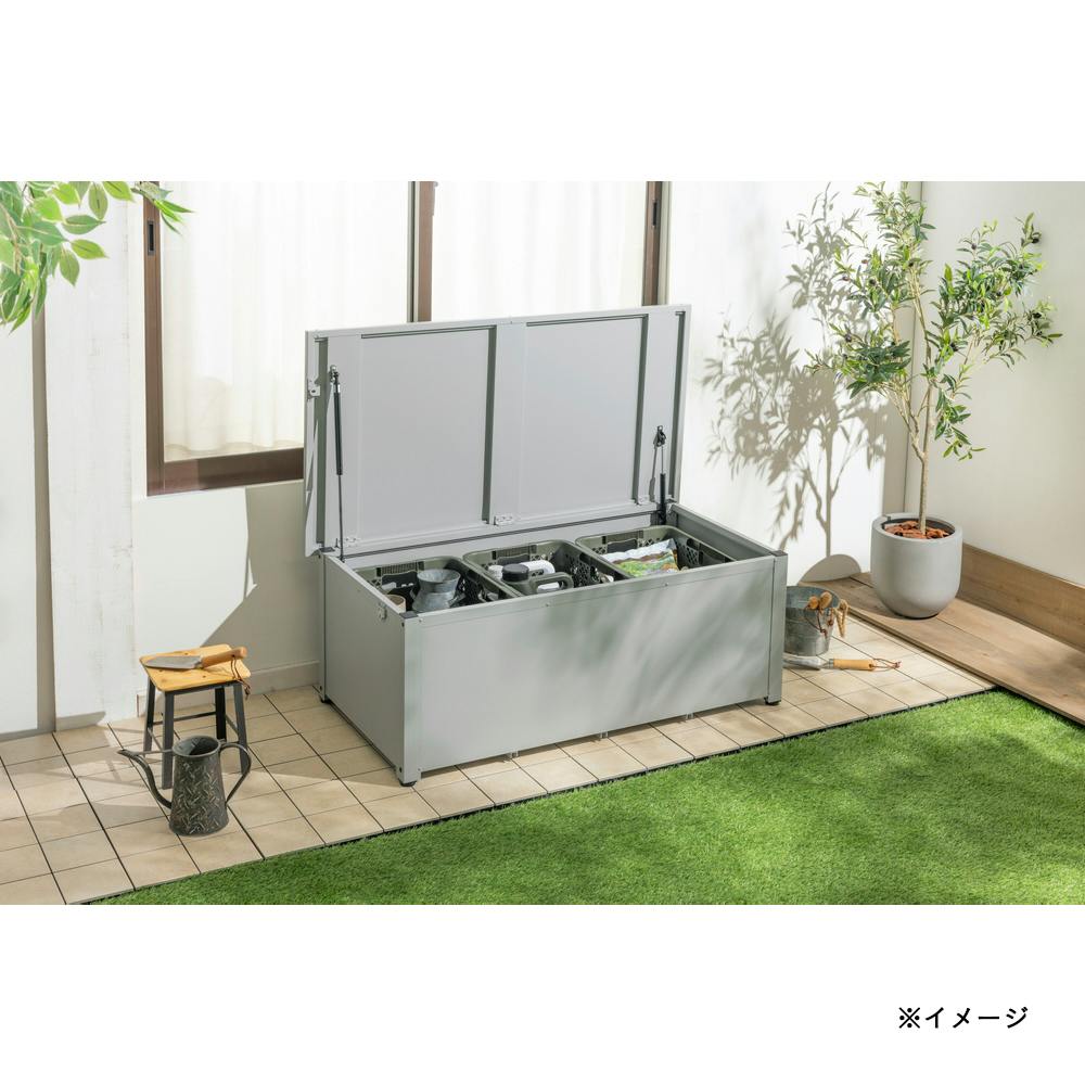 • カインズ 静かに開閉できるスチール収納ボックス グレー 奥行きワイド 幅127.2cm 奥行66cm 高さ48.6cm 屋外収納 フタ付き