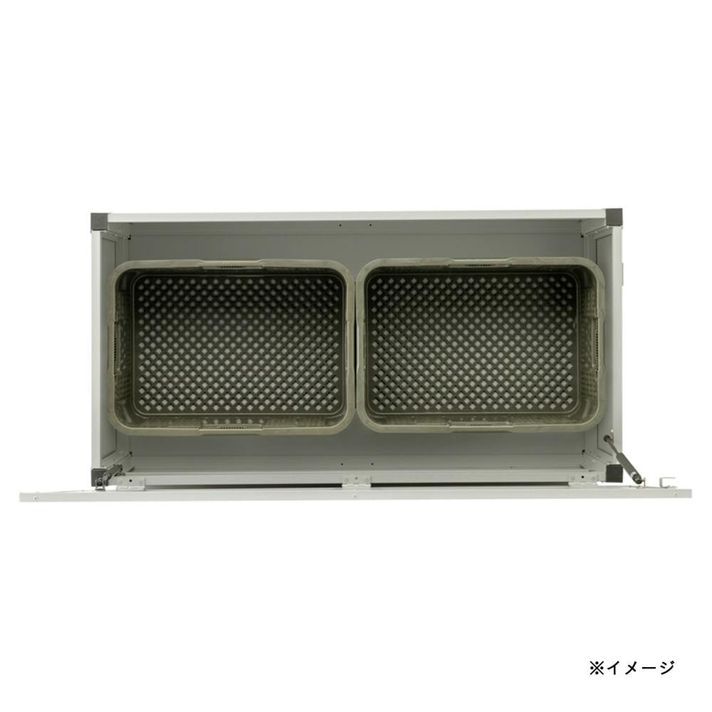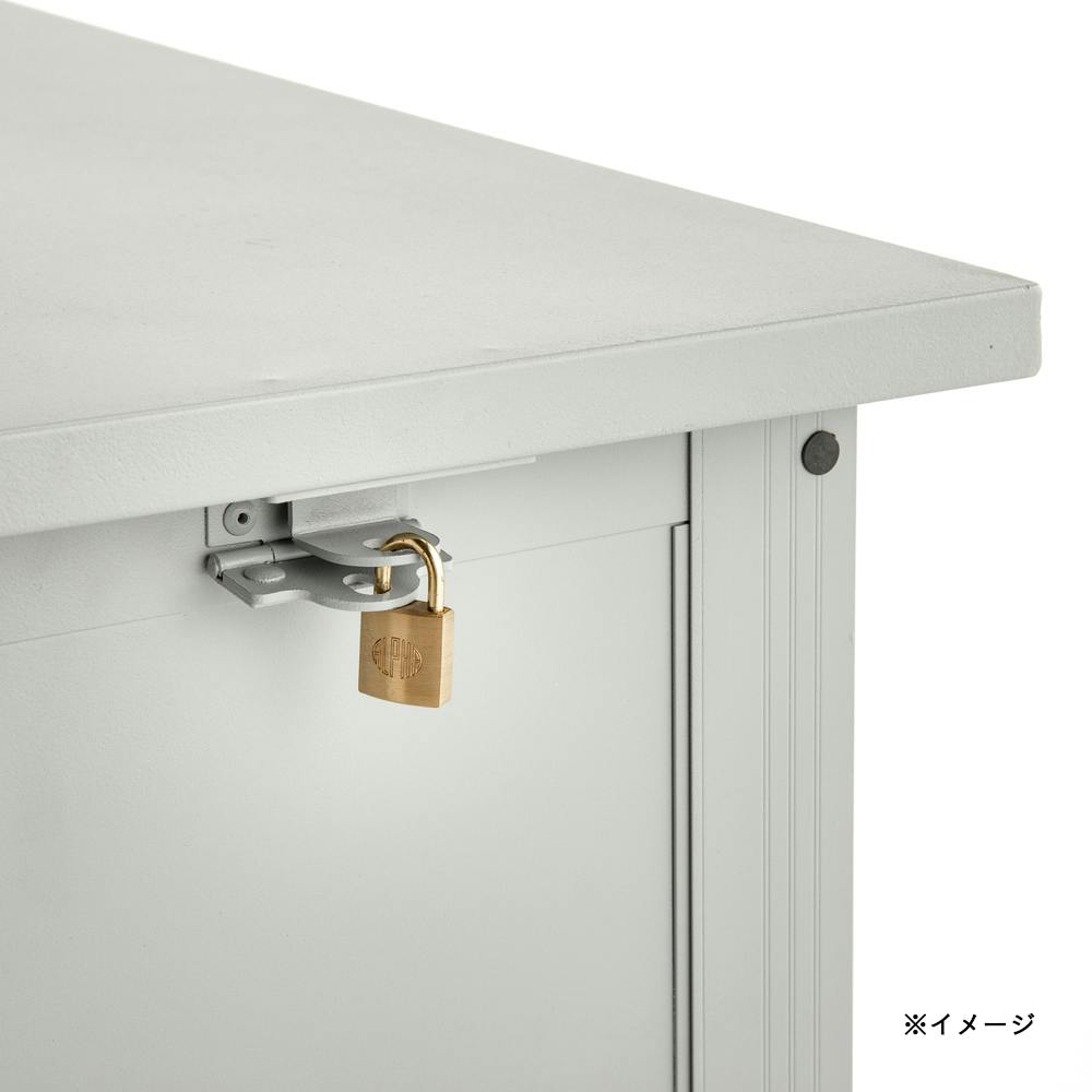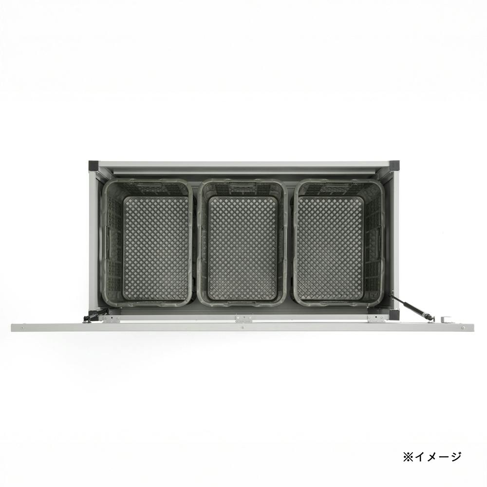 アシストダンパー付きでフタの開閉が静か。 南京錠の取付けもできる。※南京錠は別売です。コンテナボックスがそのまま入るので、楽に整理できる。
