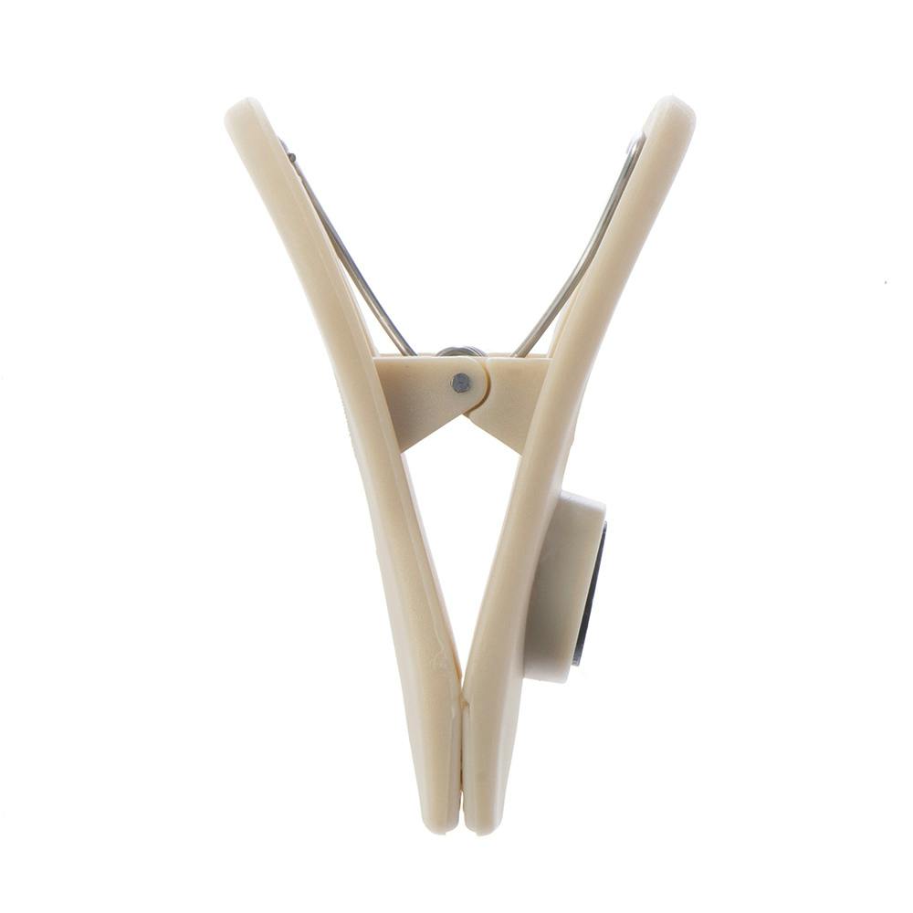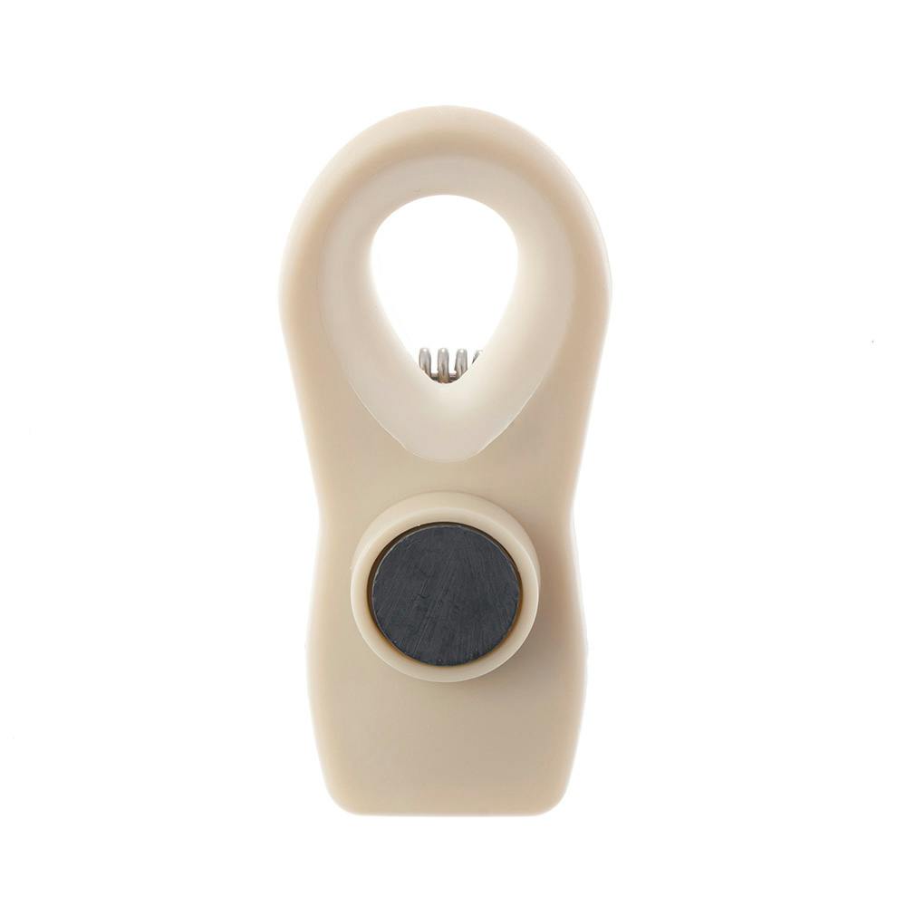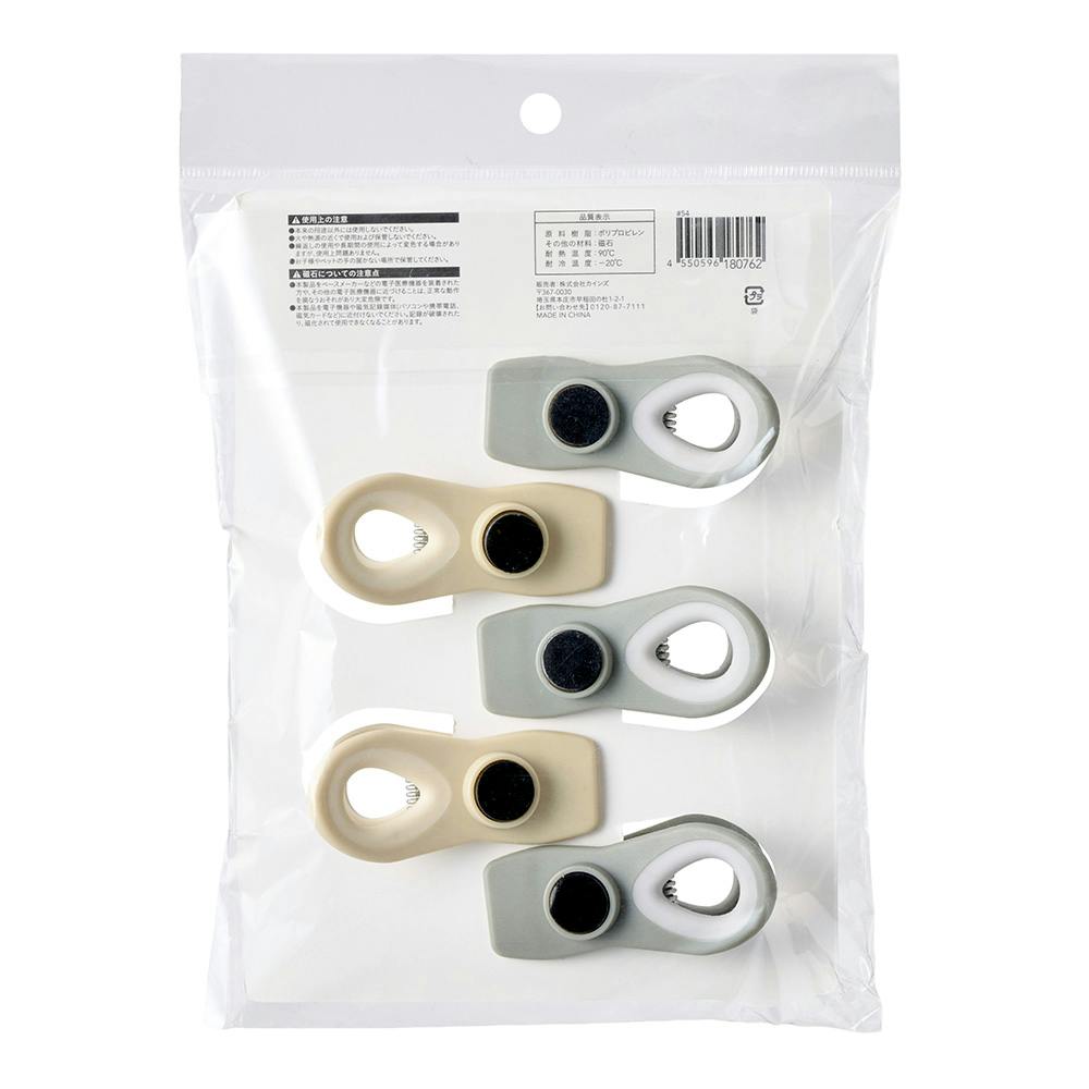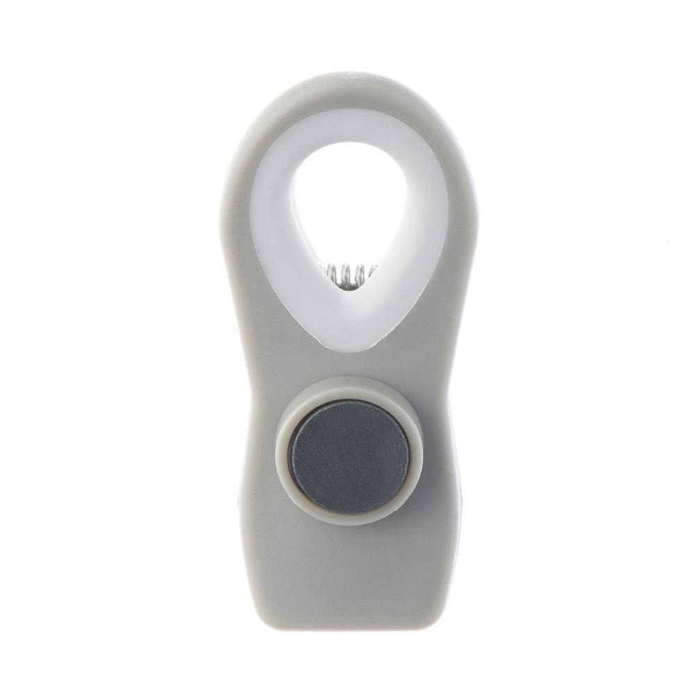 片手で使える。メモやふきんなども挟んで冷蔵庫などに付けられるマグネット付き。