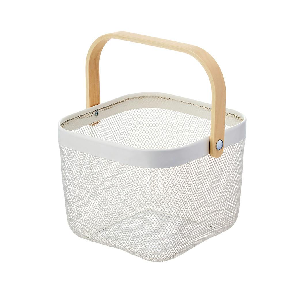 持ち手が畳めるバスケット ホワイト