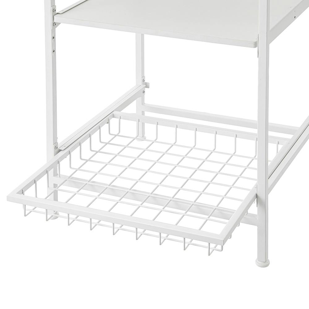 ●中板の高さが5段階変えられる。●中板とバスケットがスライド式で、出し入れがラク。