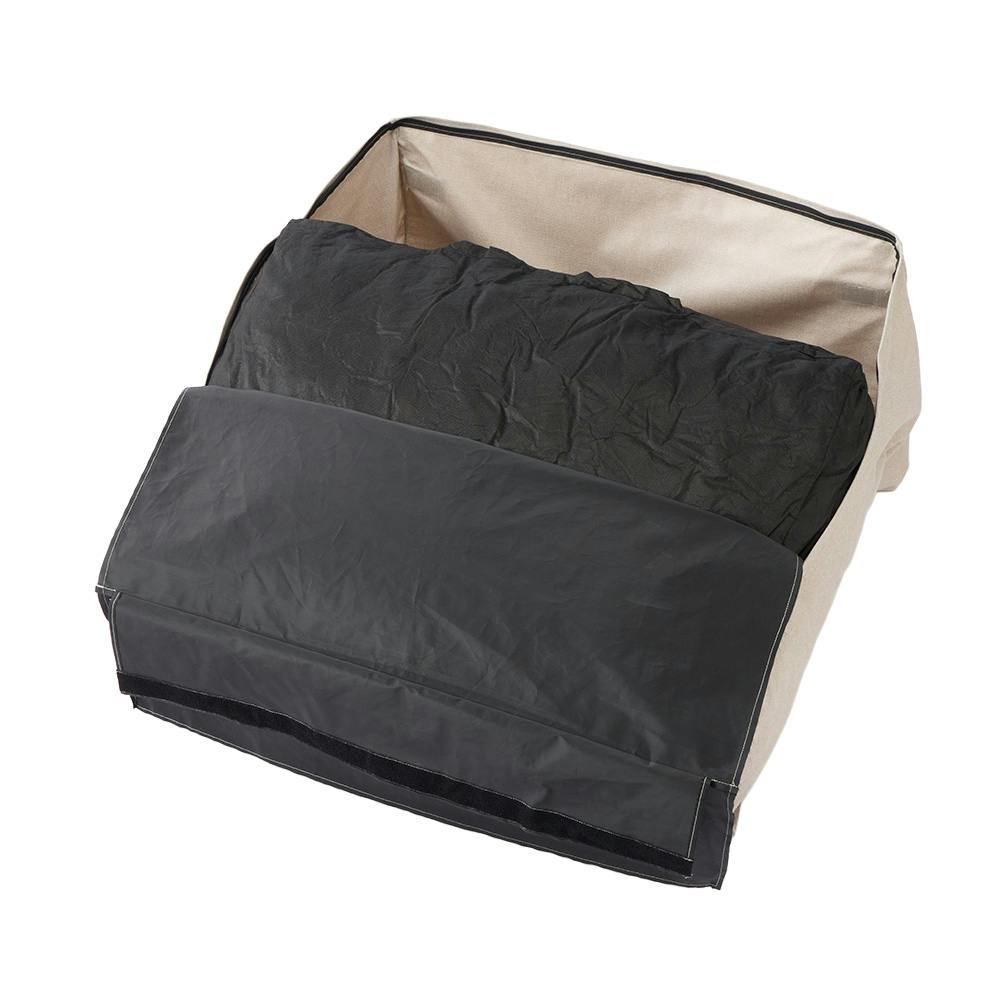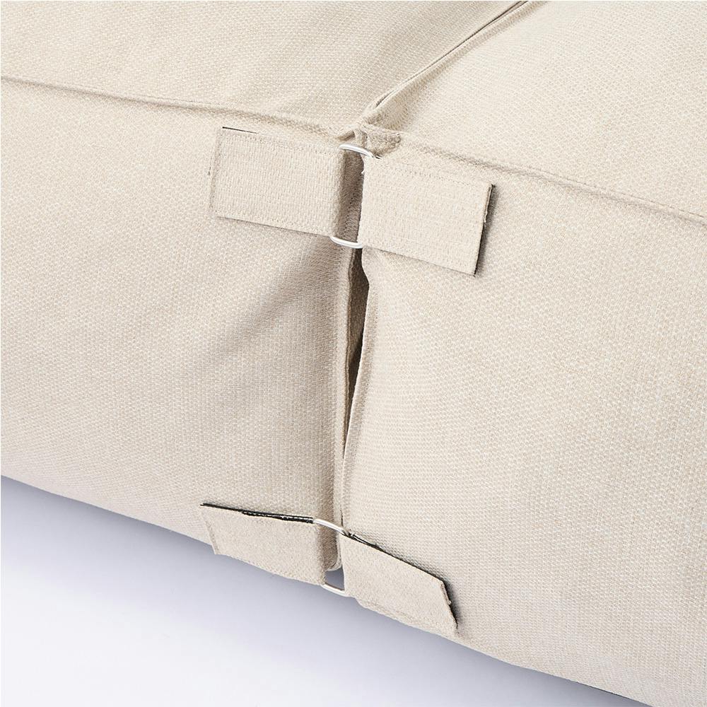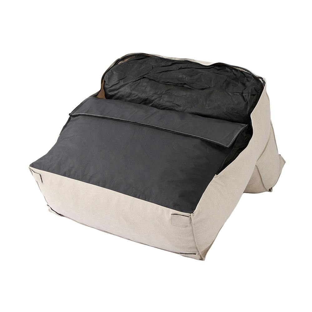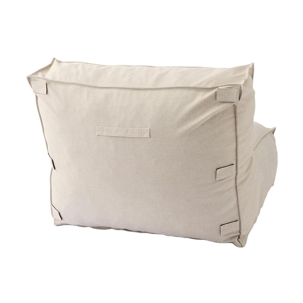 面ファスナーで簡単に2台連結もできる。カバーは外して洗濯できる。中材はへたりにくいウレタンクッション。