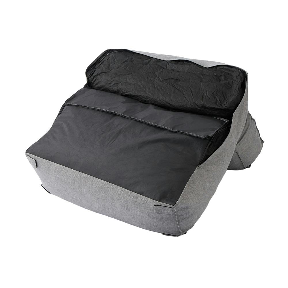 面ファスナーで簡単に2台連結もできる。カバーは外して洗濯できる。中材はへたりにくいウレタンクッション。