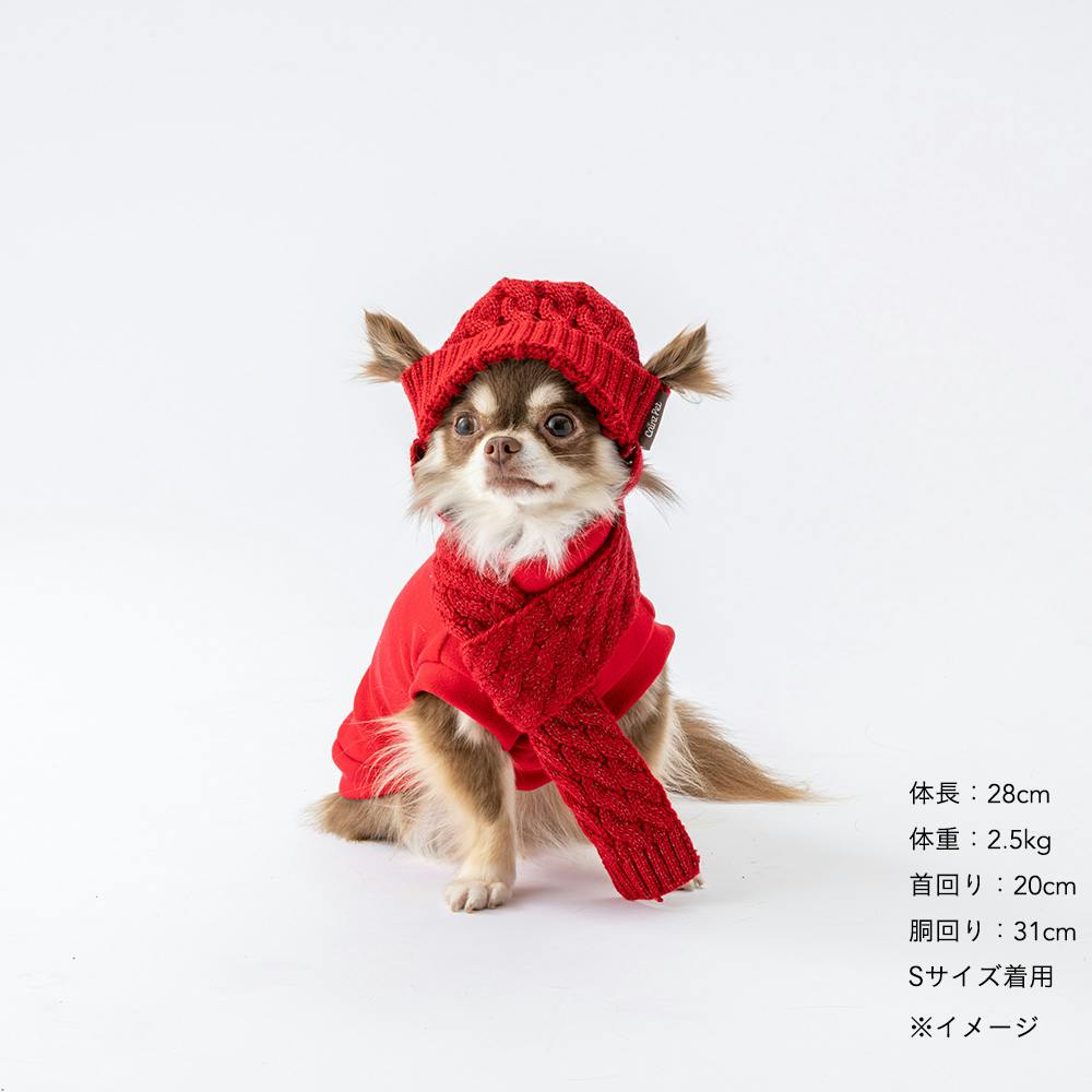 【送料無料】反射ニット帽子 レッド ペット服(犬の服)
