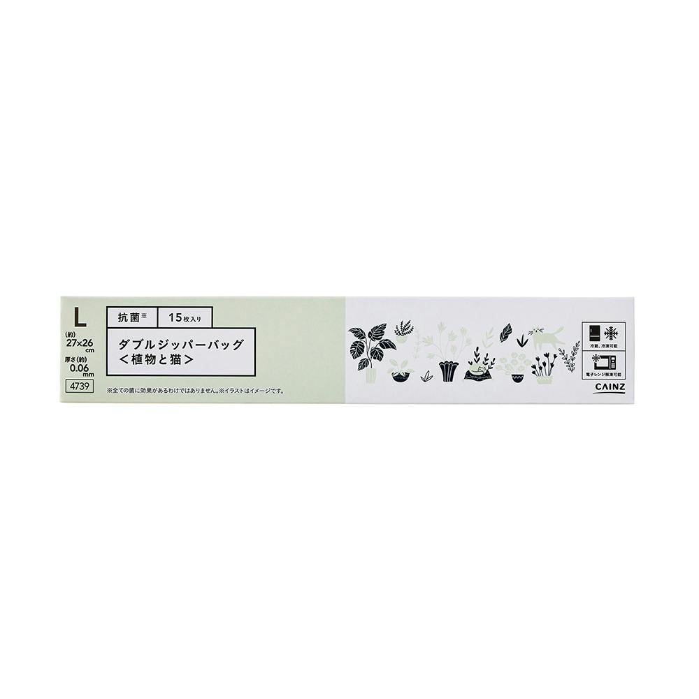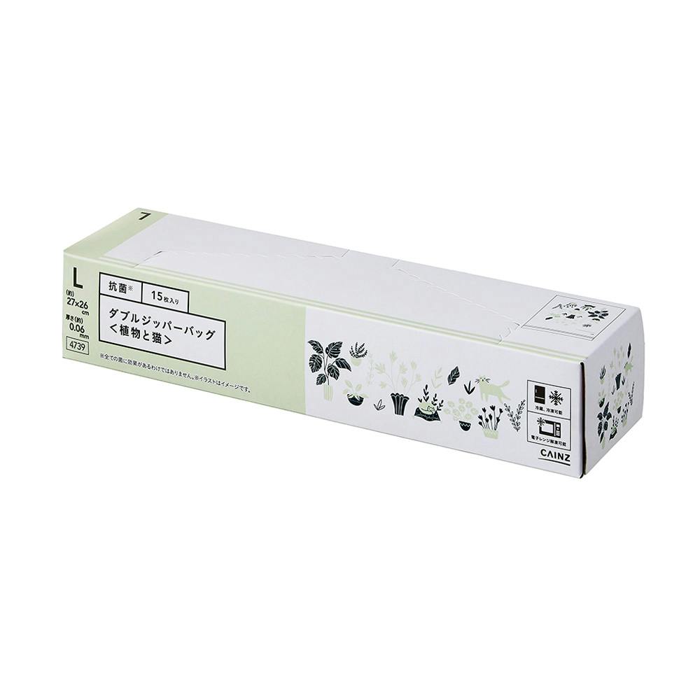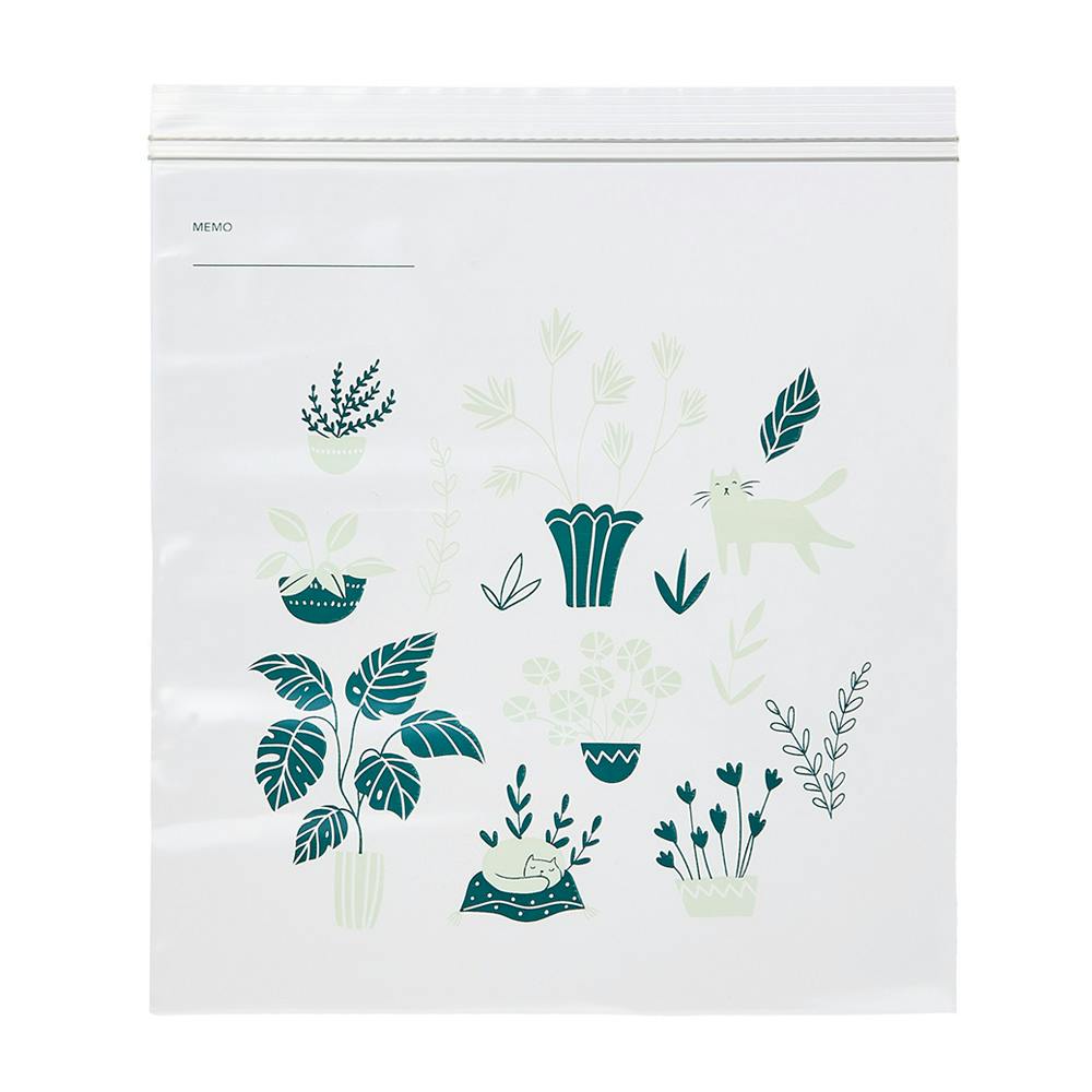 抗菌ダブルジッパーバッグ L 植物と猫 15枚入り