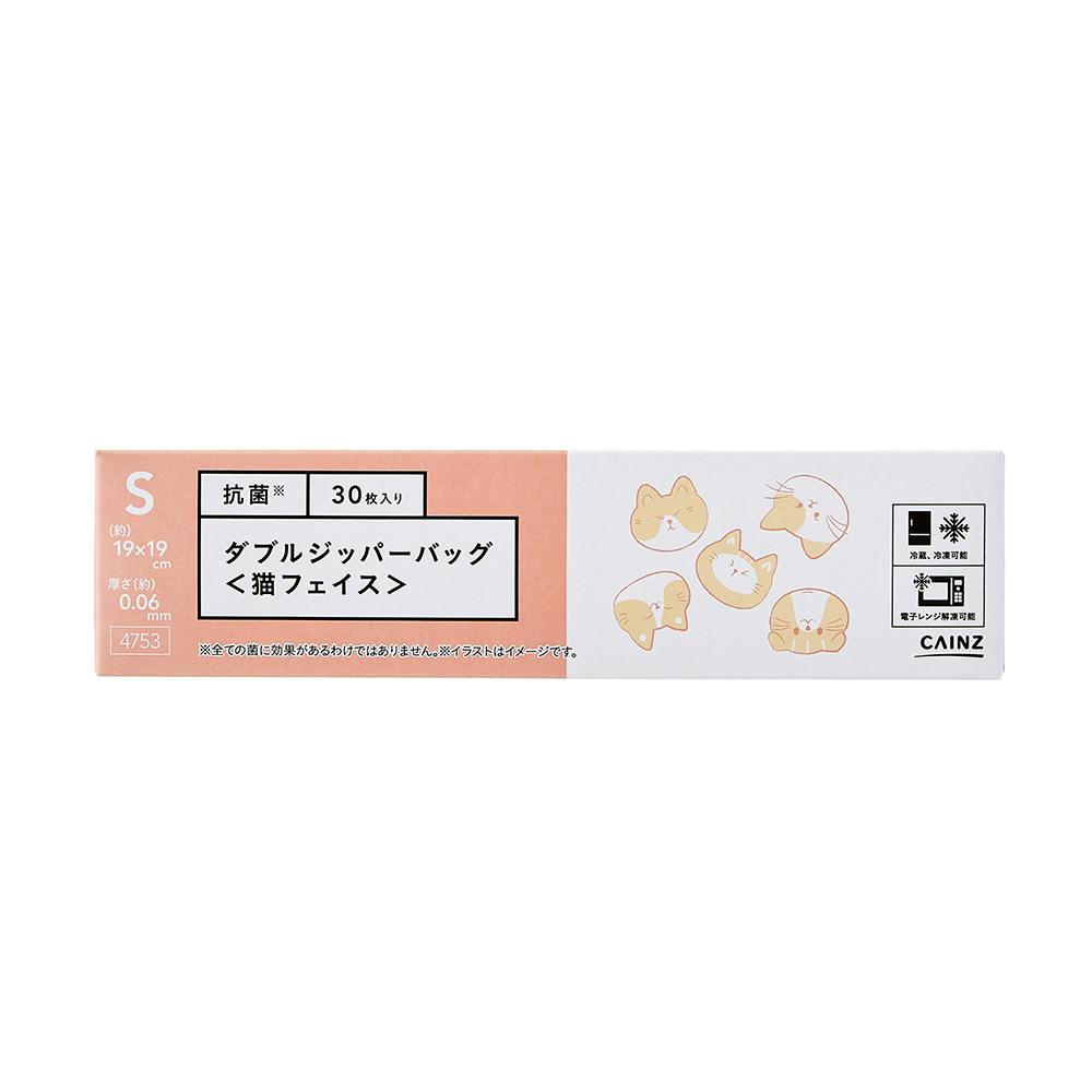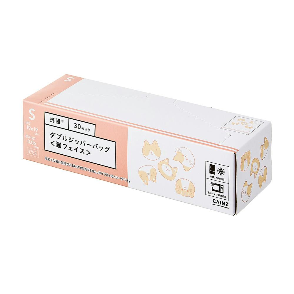 抗菌ダブルジッパーバッグ S 猫フェイス 30枚入り