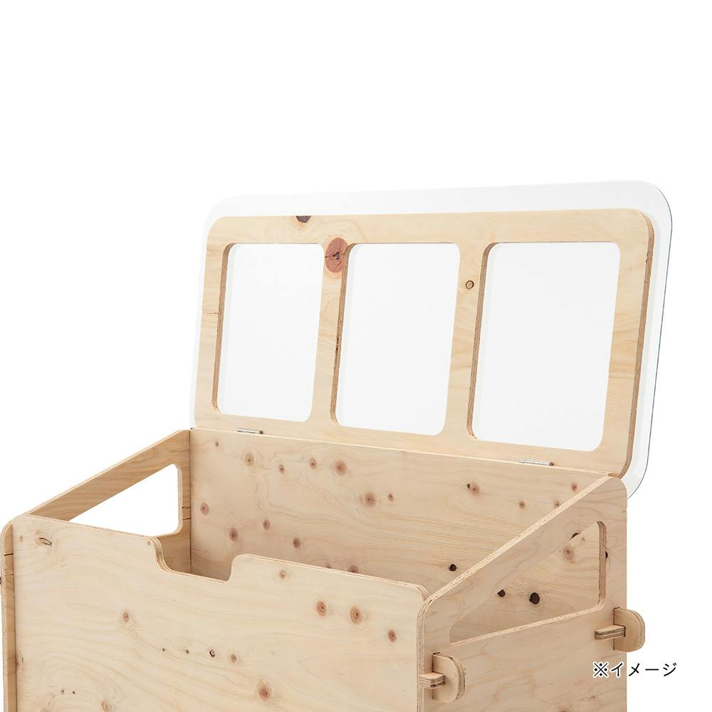 ●木材部品点数/20点 ●耐候ポリカ板/1点 ●丁番/2個 ●ビス/9本(長さ10mm・トラスネジ・ポリカ板固定用※予備分1本含む) ●ビス/9本(長さ10mm・木ネジ・丁番固定用※予備分1本含む) ●ビス/5本(長さ25mm・本体下部木材固定用※予備分1本含む)