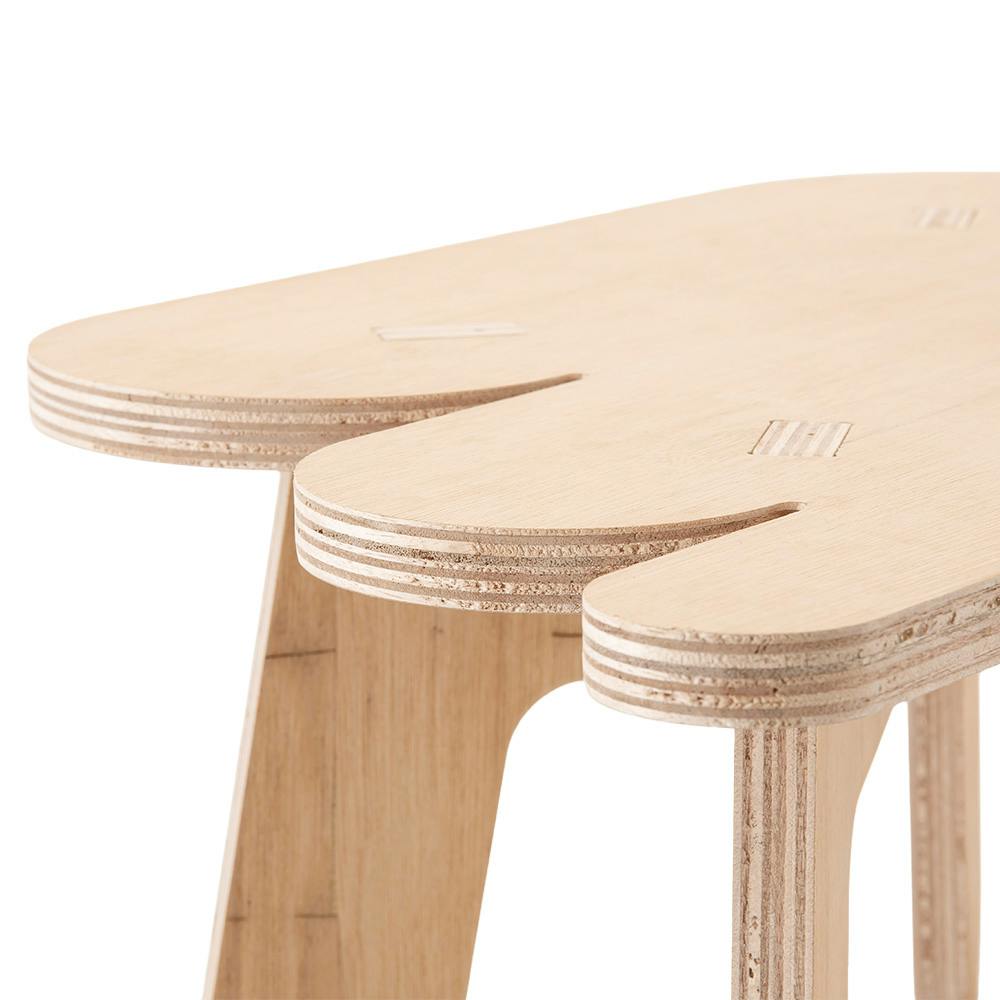 雲のように空間をもくもく漂うローテーブル。日本画に描かれている雲の形が家具にできたら、場になごむやさしい雰囲気で素敵だと思いました。手仕事へのリスペクトと同じくらいに、テクノロジーへのリスペクトを込めて、自由な形の家具にしました。(デザイナー:木村麻人)