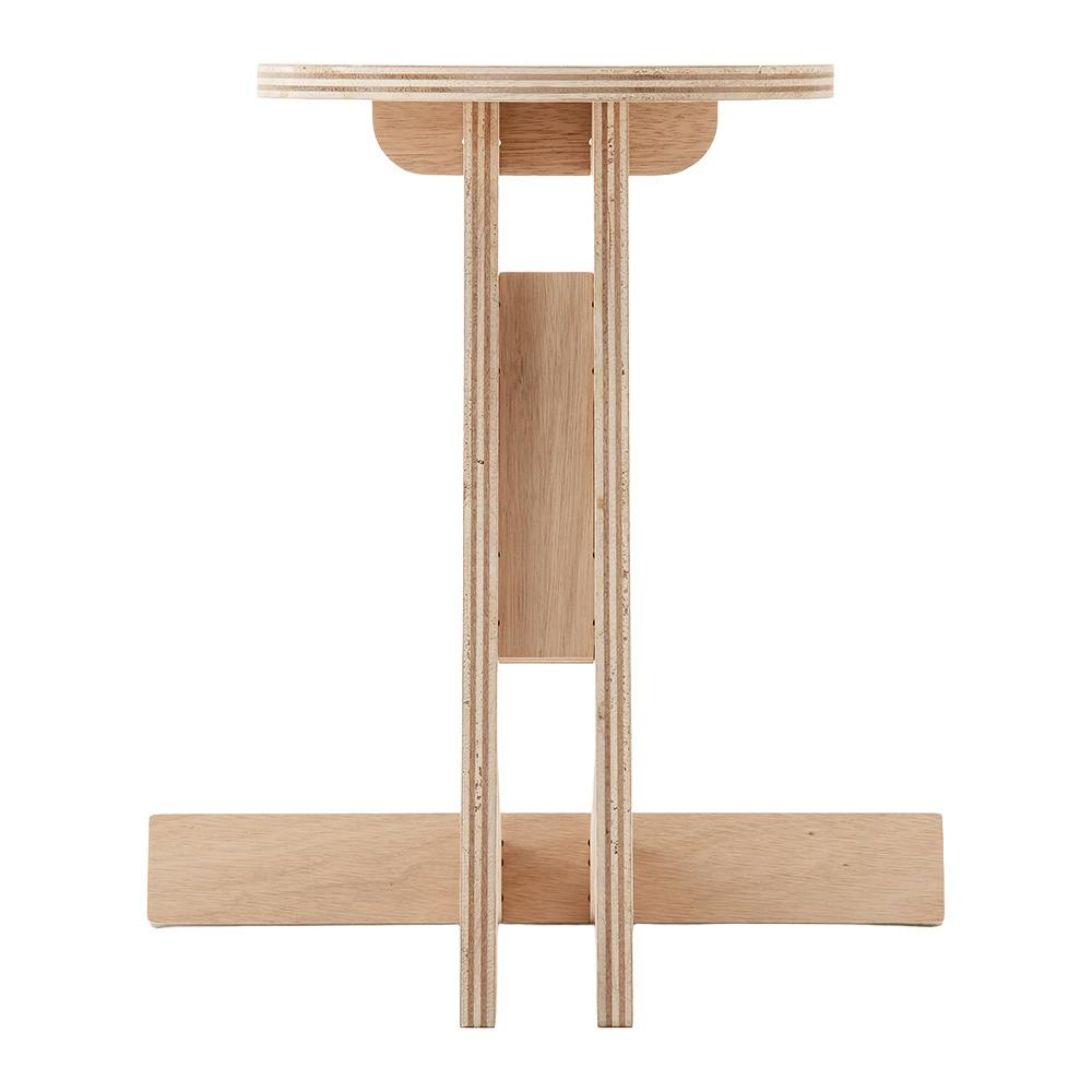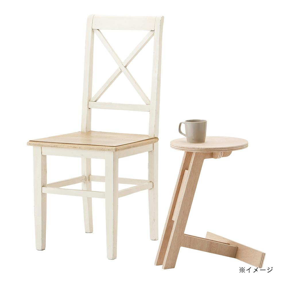 レーキ(グラウンド整備の道具)のような脚のサイドテーブル。部材を最小限に抑え、軽量で見た目も軽やかな家具です。天板下部に空間があるためソファに差し込んで本やドリンクを置いたり、ベッドサイドでスマホや照明を置いての使用もおすすめです。(デザイナー:安藤成利)
