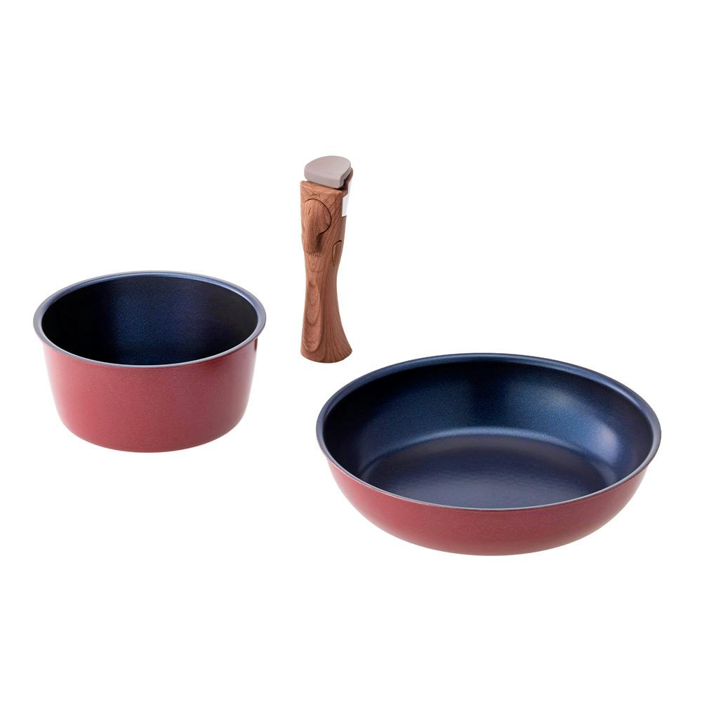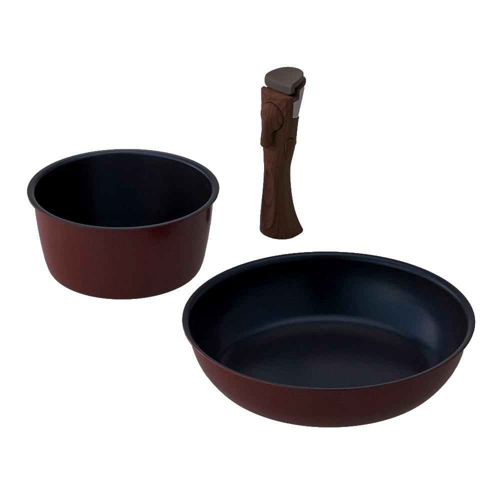 ●ガス火・IH対応 ●取っ手が外せる軽量フライパン&鍋 ●扱いやすく、普段使いしやすい軽量タイプ ●3点セット/鍋:18cm、フライパン:26cm、取っ手