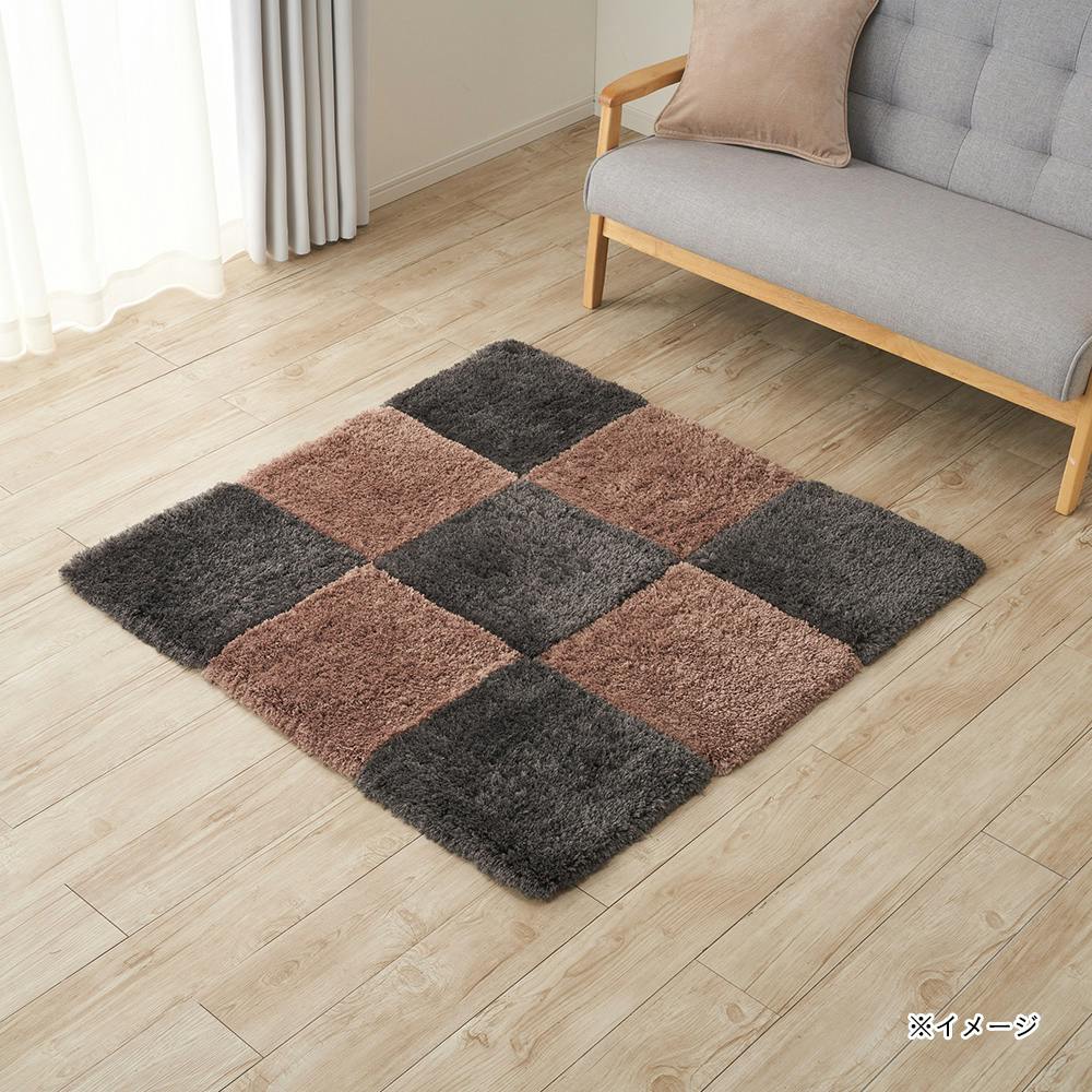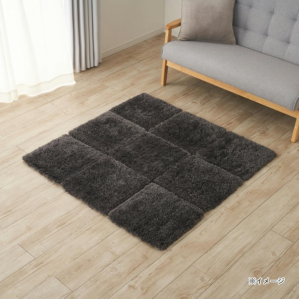 洗えるパズルラグマット シャギー ダークグレー 幅38cm 奥行38cm 厚さ2cm