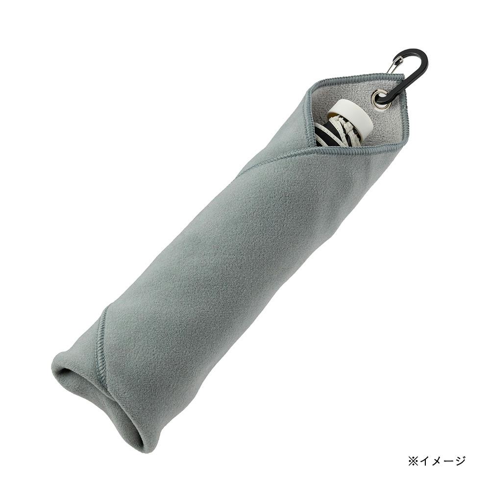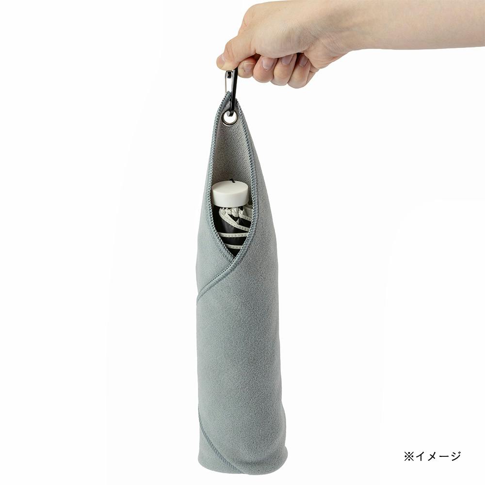 ◯表面と裏面がくっつく素材を採用しており、傘などを包むことができる。◯カラビナ付きでひっかけることが可能。◯洗濯機で洗える