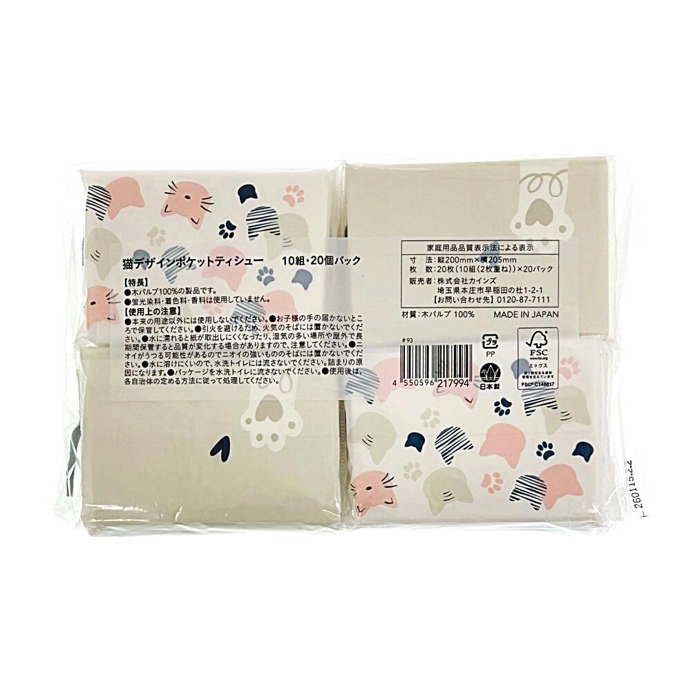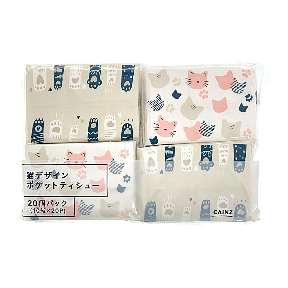 猫デザインポケットティッシュ 10組×20個