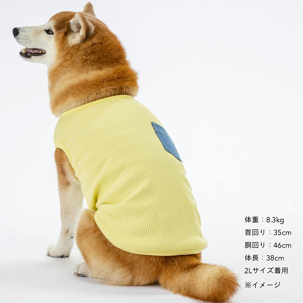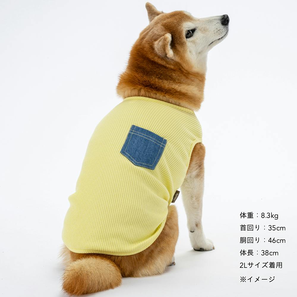 【送料無料】ポケット付きリブタンクトップ 2Lサイズ イエロー ペット服(犬の服)
