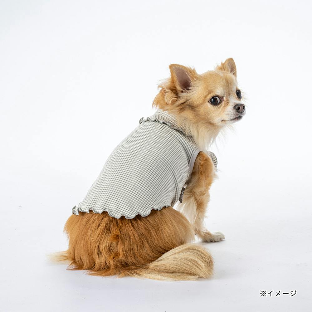 【送料無料】襟付きボーダータンクトップ MDサイズ グレー ペット服(犬の服)