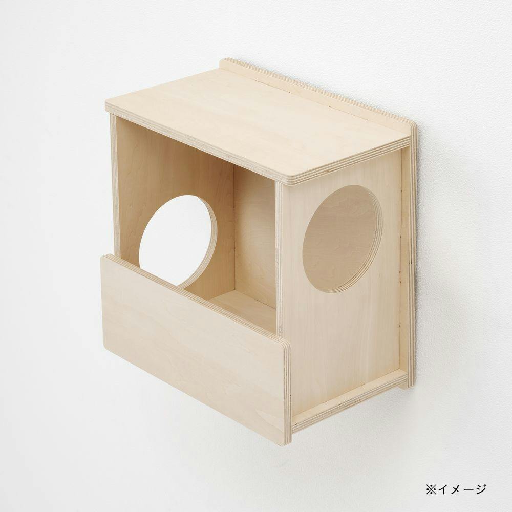 石膏ボードに取り付けられるボックス型のキャットステップです。穴が目立ちづらいピンで取り付けることができます。