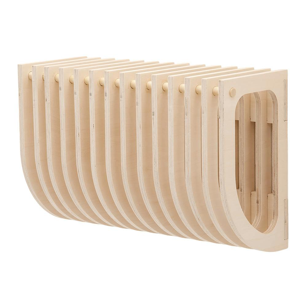 ●木材部品点数/17点 ●間隔補助パーツ点数/2点 ●ビス/17本(長さ35mm※予備分1本含む) ●ビス/17本(長さ12mm・木ネジ・取付金具固定用※予備分1本含む) ●壁取付用金具/4セット ●木工用接着剤は付属しておりません。 ●耐荷重(約)16kg