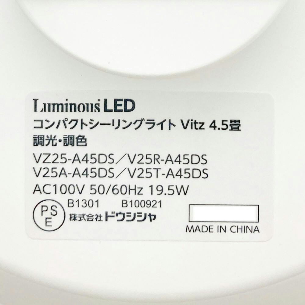 ルミナスLED コンパクトシーリングライト Vitz ヴィッツ 4.5畳用 調光調色モデル VZ25-A45DS