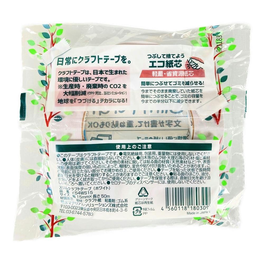 紙をベースに使用しているので、OPPテープに比べ、環境に優しい。クラフトテープは、日本で誕生した、伝統的なテープです。バイオベース率56% 生産時、廃棄時に炭酸ガス86%削減