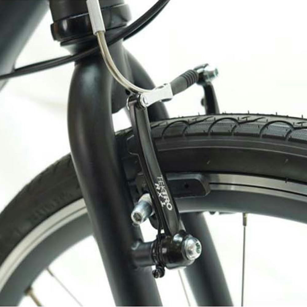 制動力のあるVブレーキを装備。手のひらを面で支え、疲れにくいエルゴ形状のグリップを採用。すその?み込みや汚れを防ぐチェーンガードを装備することで通勤、通学、サイクリングにも最適なクロスバイク。フレームインナーチューブ採用で見た目もスタイリッシュに。