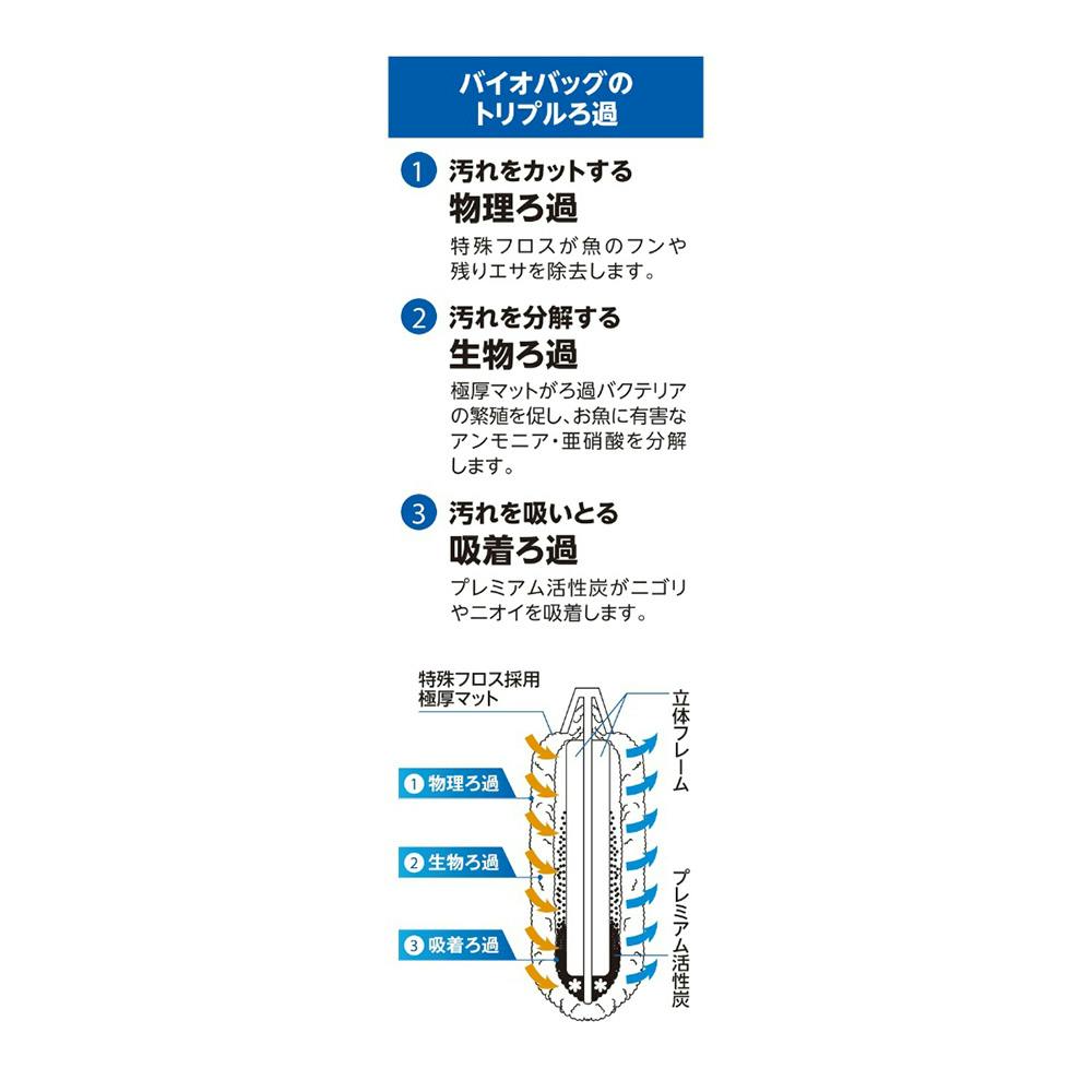 ●手を汚さずにワンタッチで交換できます。●独自の構造が物理、生物、吸着の高性能トリプルろ過を実現します。●水の汚れを効率良くクリーンにします。