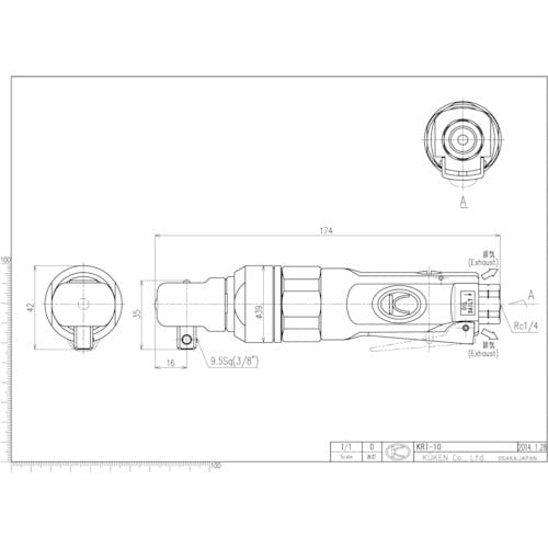 【CAINZ-DASH】空研 3/8インチSQエアラチェットインパクト(9.5mm角) KRI-10 KRI-10【別送品】