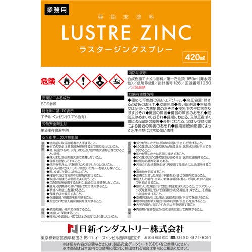 【CAINZ-DASH】日新インダストリー ラスタージンクスプレー 420ML LU001【別送品】
