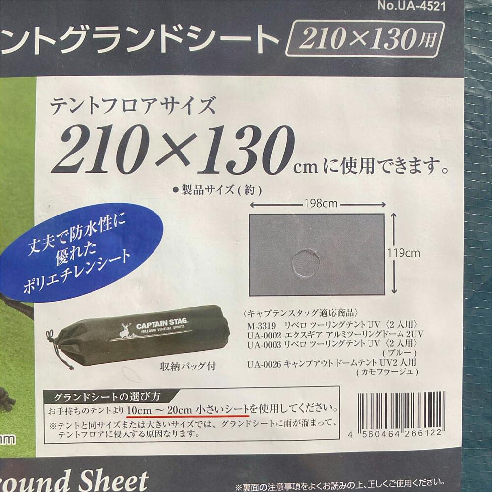 キャプテンスタッグ CAPTAIN STAG テントグランドシート 210×130用 UA-4521