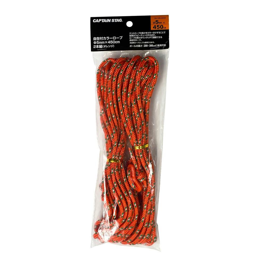 キャプテンスタッグ CAPTAIN STAG 自在付カラーロープφ5mm×450cm 2本組 (オレンジ) UA-4533
