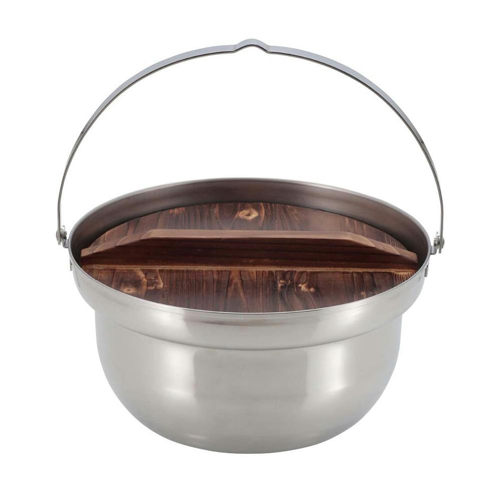 焚き火で使いやすいステンレス製ツル付き鍋木ぶた付き