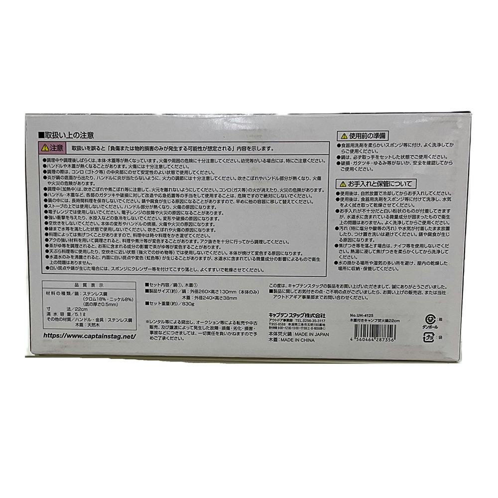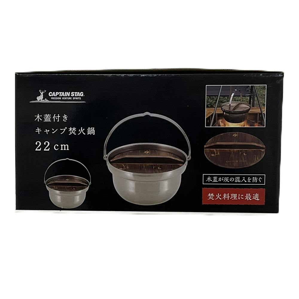 キャプテンスタッグ CAPTAIN STAG 木蓋付きキャンプ焚火鍋 22cm UH-4125