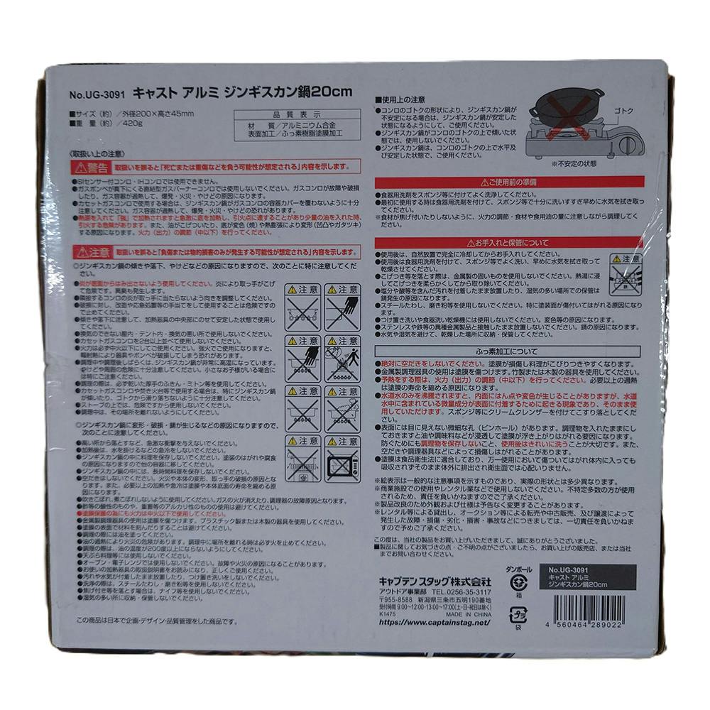 キャプテンスタッグ CAPTAIN STAG キャストアルミ ジンギスカン鍋 20cm UG-3091