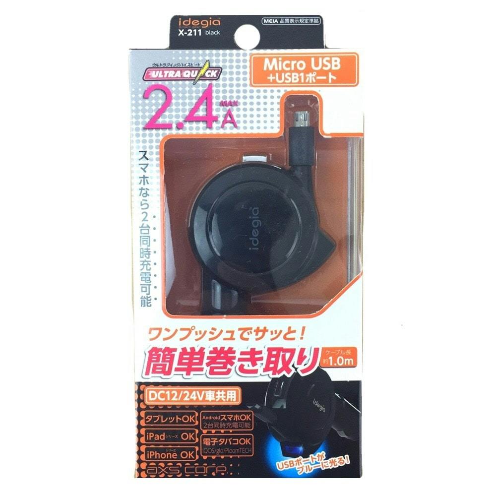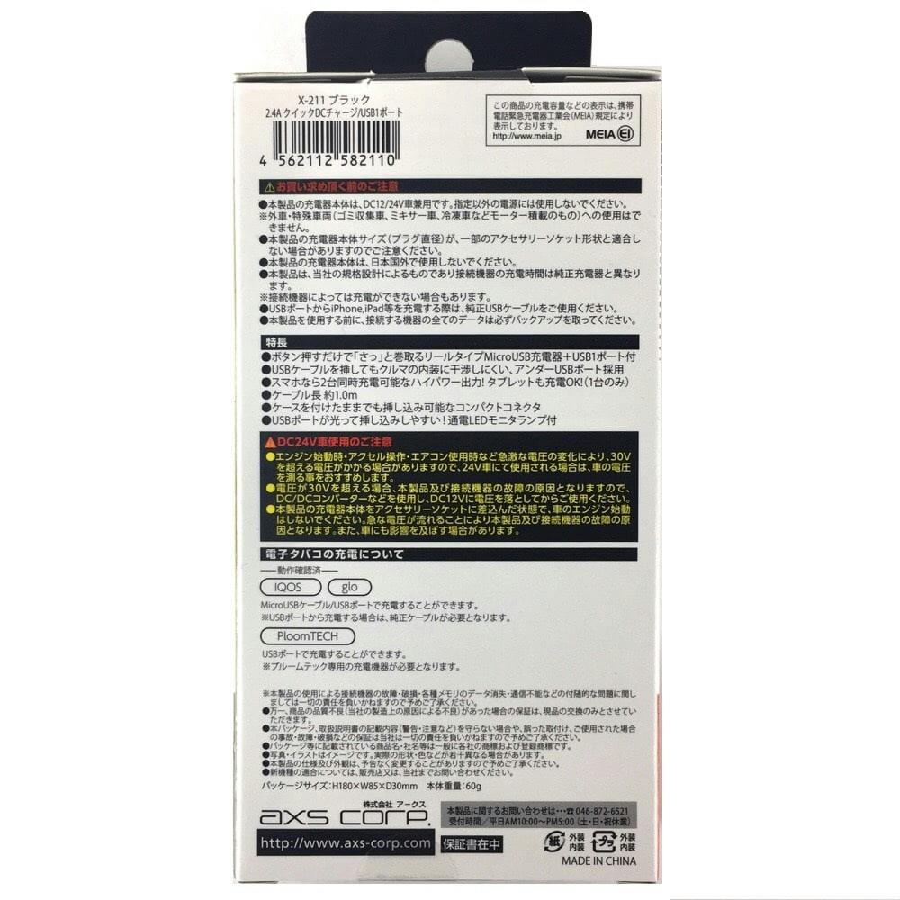 2.4A クイックDCチャージ/USB1ポート ブラック X-211