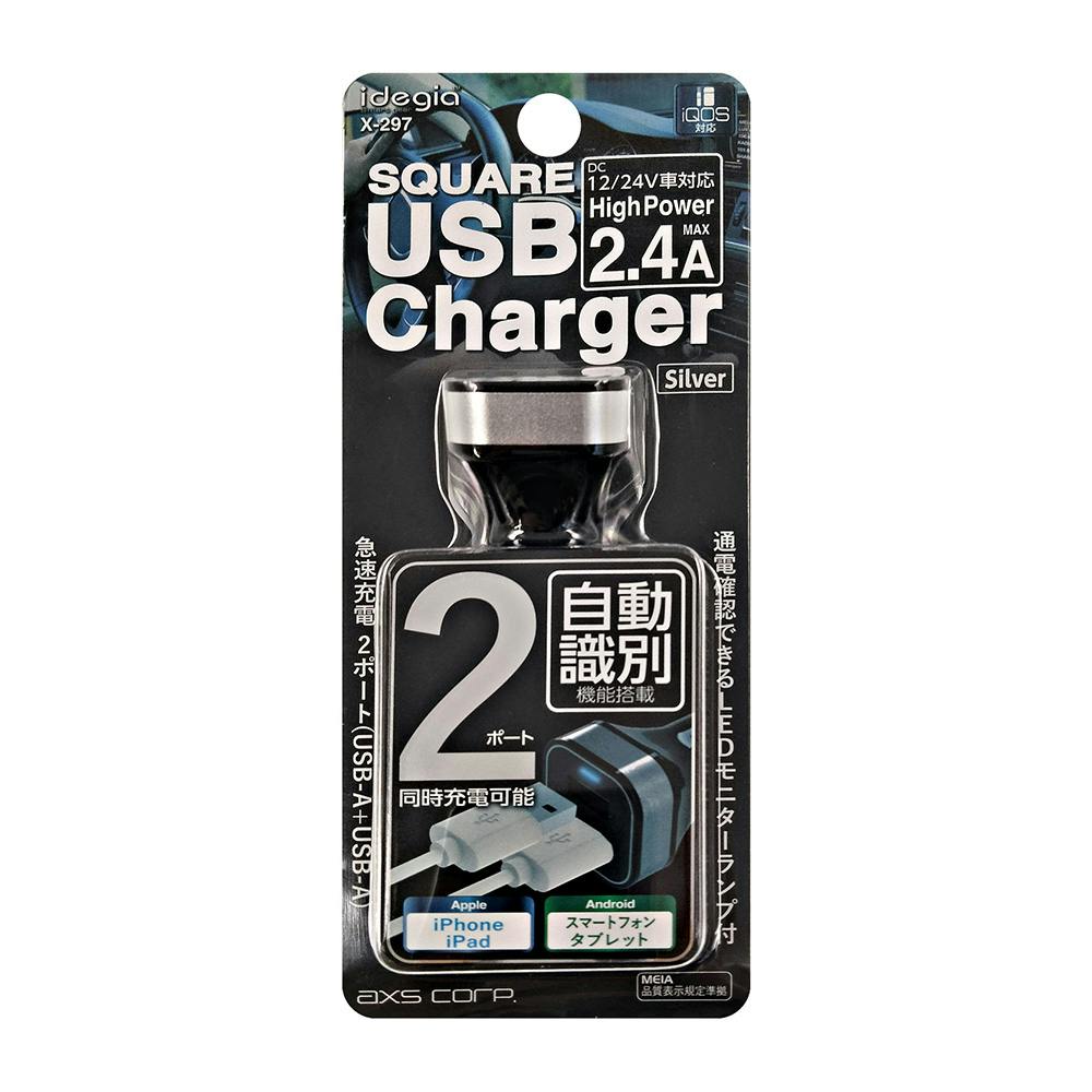 スクエア車載充電器 2.4A シルバー X-297