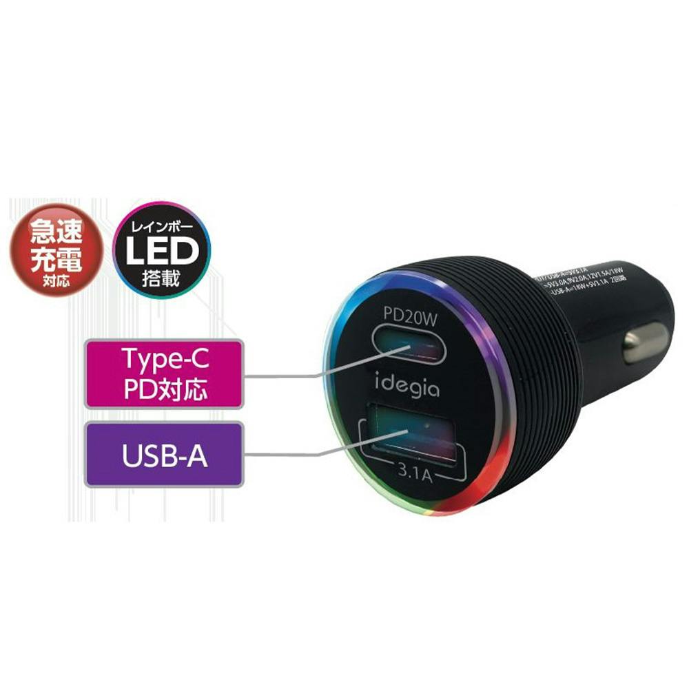 PD20W対応の高出力の車載充電器。●タブレット、ゲーム機、電子タバコも充電ができます。