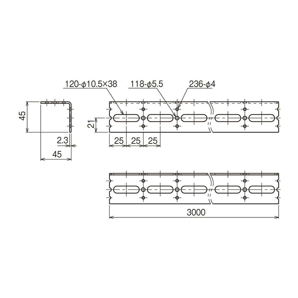 アングルに3種類の穴が設けてあるので、穴あけの手間が省け、作業の省力化が図れます。直線の接続や交差する場合はボルト、ナットだけで組み立てが行えます。