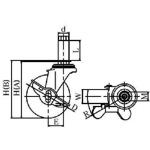 【CAINZ-DASH】ユーエイ キャスター事業部 差し込み式 自在 キャスター ゴム 車輪径75mm ストッパー付き Lタイプ LTF-S型 パイプ径16 LTF-75RHS-16【別送品】