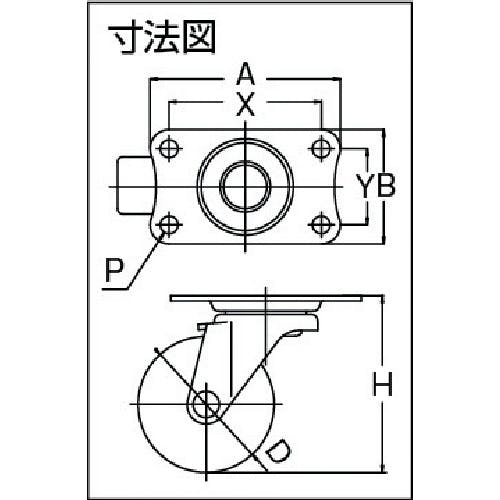 【CAINZ-DASH】ユーエイ キャスター事業部 プレート式 自在 キャスター ゴム 車輪径100mm Eタイプ E型 取付寸法82×40 E-100RH【別送品】