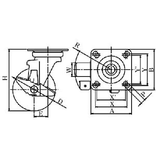 【CAINZ-DASH】ユーエイ キャスター事業部 プレート式 自在 キャスター ウレタン 車輪径130mm ストッパー付き Jタイプ J-S型 取付寸法82×82(75×75) UWJ-130S【別送品】