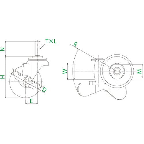 【CAINZ-DASH】ユーエイ キャスター事業部 ねじ込み式 自在 キャスター ゴム 車輪径75mm ストッパー付き Sタイプ ST-S型 ネジ寸法M12×35ピッチ1.75 ST-75RHS-M12-35【別送品】