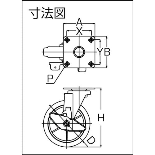 【CAINZ-DASH】ユーエイ キャスター事業部 プレート式 自在 キャスター グレーゴム 車輪径150mm ストッパー付き Jタイプ RJ2F-S型 取付寸法80×80(75×75) RJ2F-150NWRS-G【別送品】
