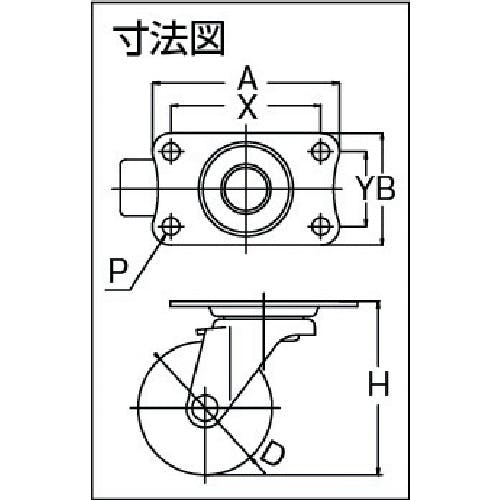 【CAINZ-DASH】ユーエイ キャスター事業部 プレート式 自在 キャスター ウレタン 車輪径75mm Eタイプ E型 取付寸法56×28 E-75UR【別送品】