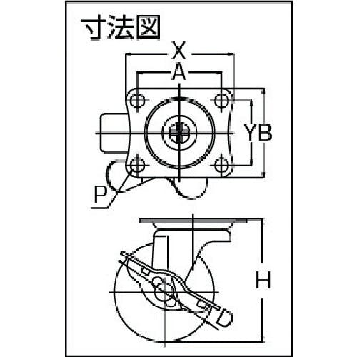 【CAINZ-DASH】ユーエイ キャスター事業部 プレート式 自在 キャスター ウレタン 車輪径38mm ストッパー付き Gタイプ G-S型 取付寸法36×28 G-38URS【別送品】
