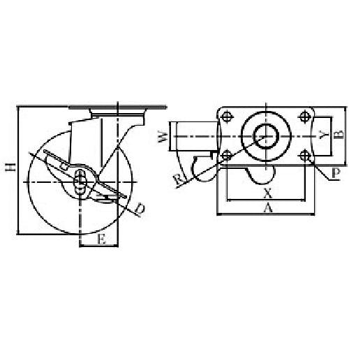 【CAINZ-DASH】ユーエイ キャスター事業部 プレート式 自在 ステンレスキャスター ナイロン 車輪径75mm ストッパー付き Eタイプ SUS-E-S型 取付寸法56×28 SUS-E-75NS【別送品】