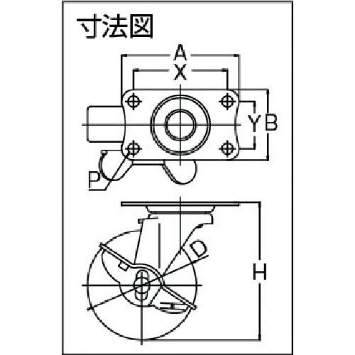 【CAINZ-DASH】ユーエイ キャスター事業部 プレート式 自在 キャスター エラストマー 車輪径75mm ストッパー付き Eタイプ E-S型 取付寸法56×28 E-75ELS【別送品】