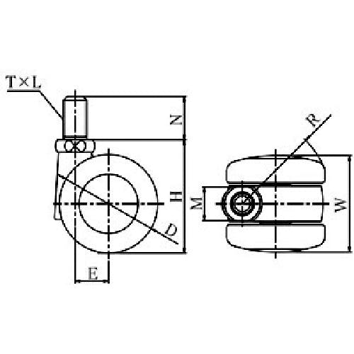 【CAINZ-DASH】ユーエイ キャスター事業部 ねじ込み式 自在 双輪キャスター ナイロン 車輪径50mm OTHERS PT型 ネジ寸法M12×14ピッチ1.25 PT-50T-M12【別送品】