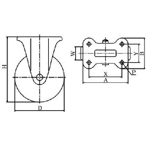 【CAINZ-DASH】ユーエイ キャスター事業部 プレート式 固定 キャスター ウレタン 車輪径130mm PMタイプ PMR型 取付寸法100×56 PMR-130GUB【別送品】