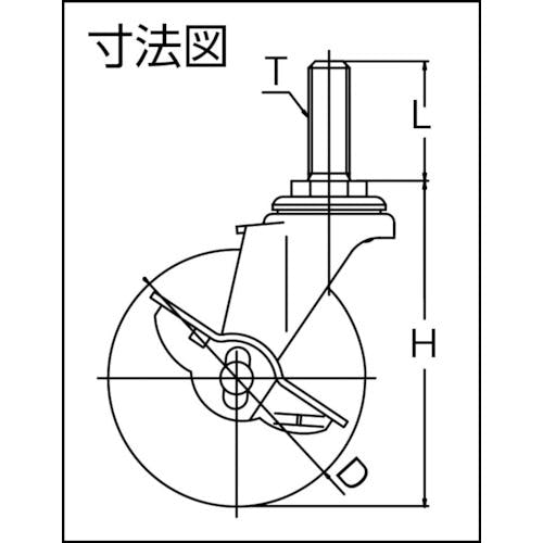 【CAINZ-DASH】ユーエイ キャスター事業部 ねじ込み式 自在 キャスター エラストマー 車輪径75mm ストッパー付き Lタイプ LT-S型 ネジ寸法M12×35ピッチ1.75 LT-75ELS-M12-35【別送品】