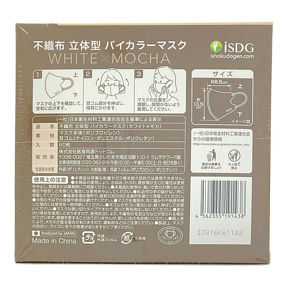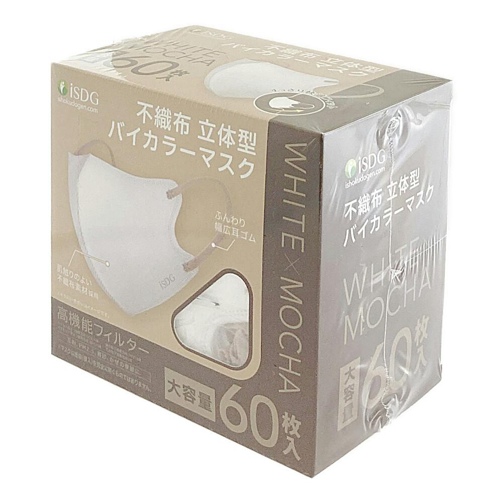 医食同源 不織布 立体型 バイカラーマスク ホワイト/モカ 60枚入